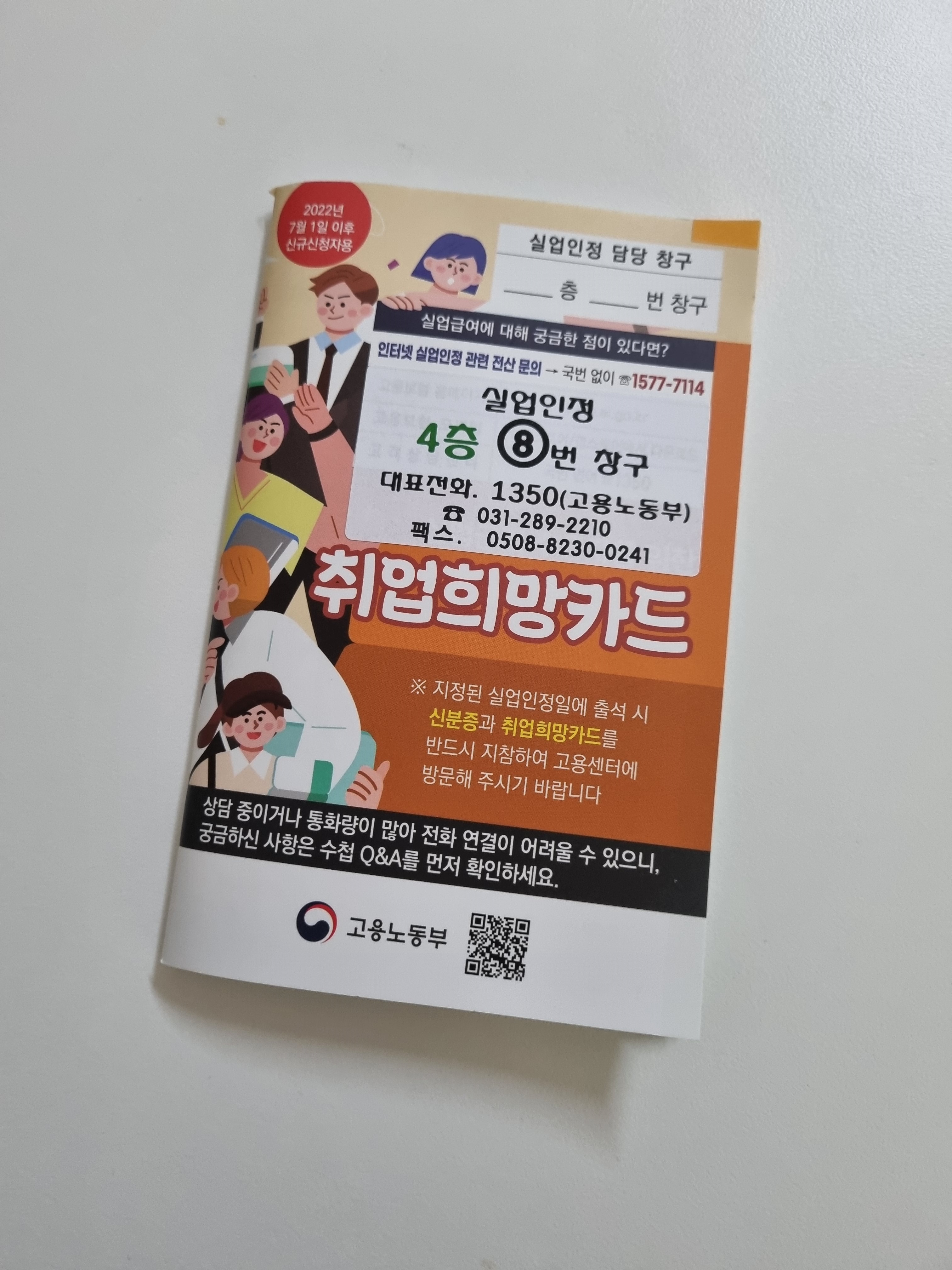 저 같은 경우, 필요했던 준비물은 신분증, 취업희망카드, 본인의 활동에 맞는 증빙자료였는데요.