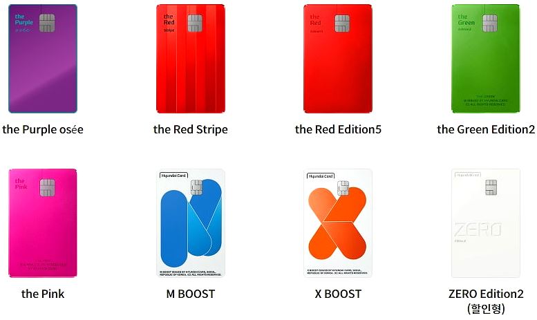 하지만 현대카드라고 해서 모든 카드를 다 사용할 수 있는 건 아닌데요.