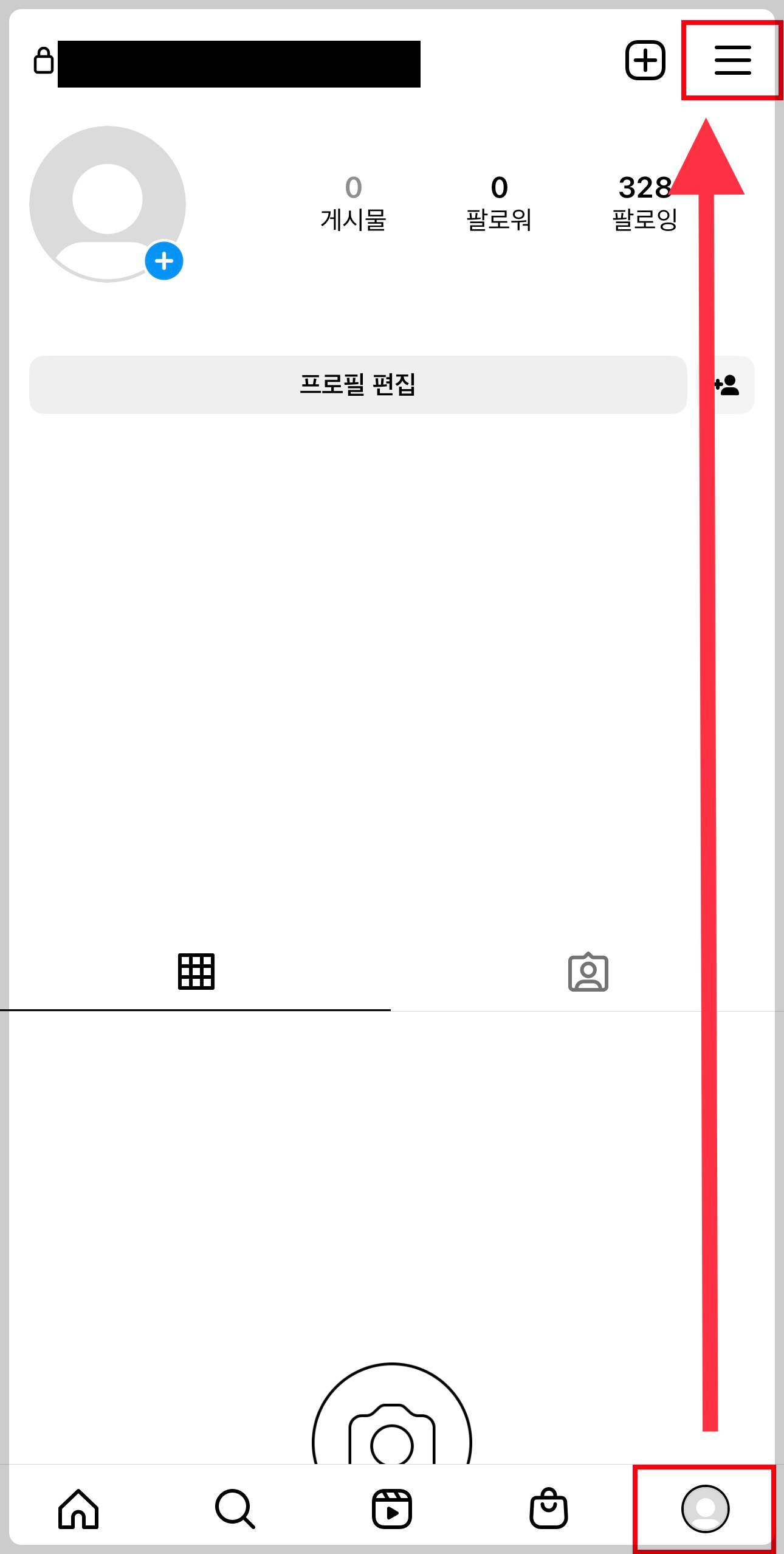 2. 하단 메뉴의 내 프로필 아이콘 > 우측 상단의 설정(⚙️ 톱니바퀴)을 선택합니다.